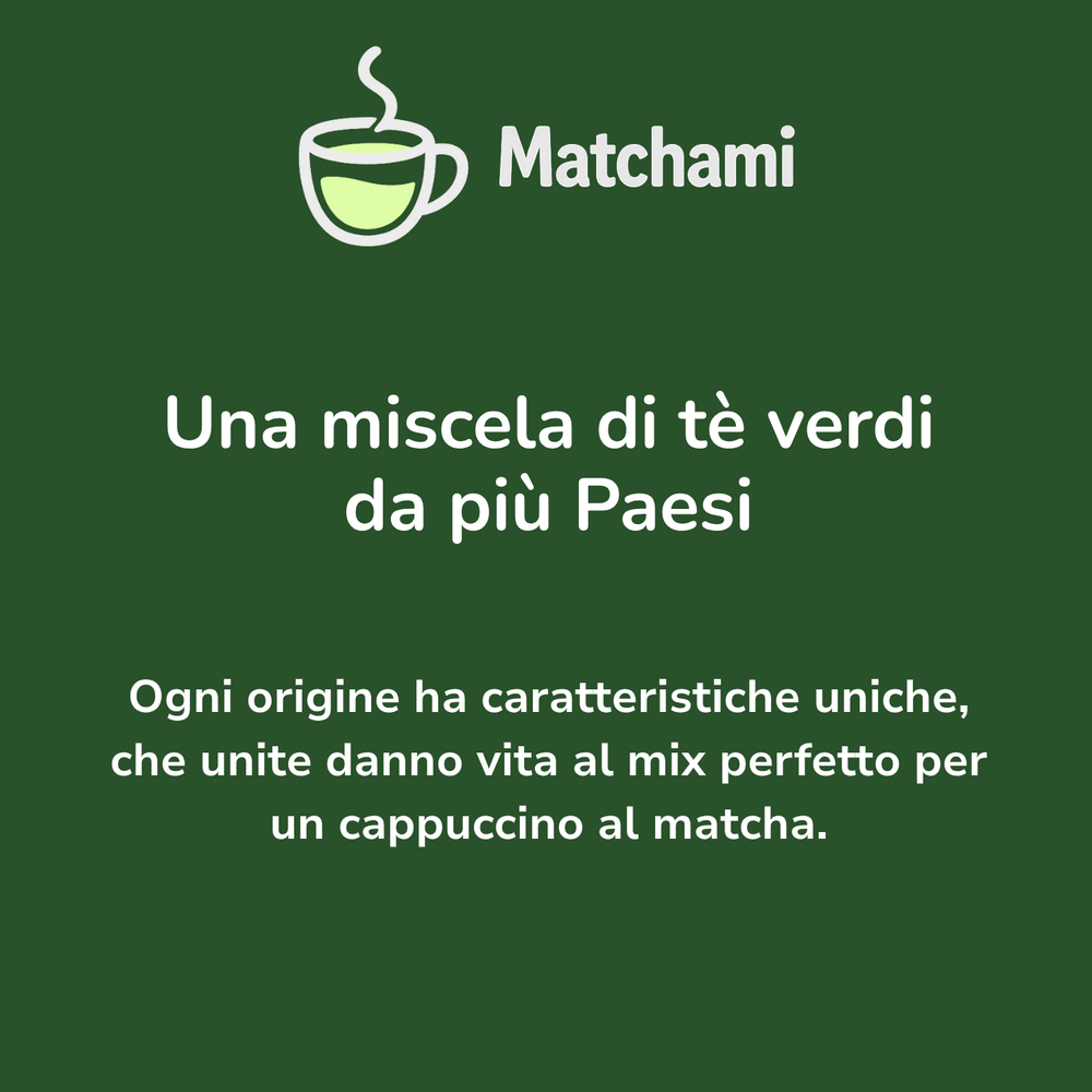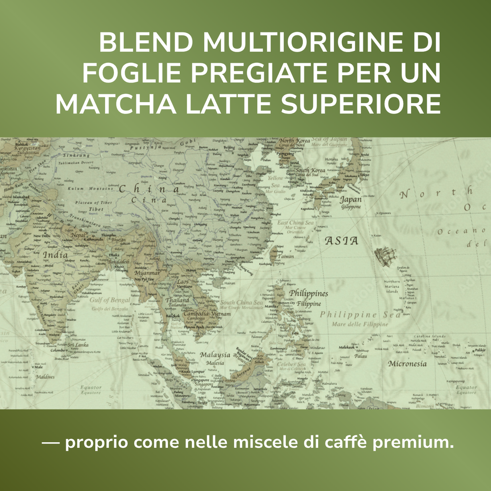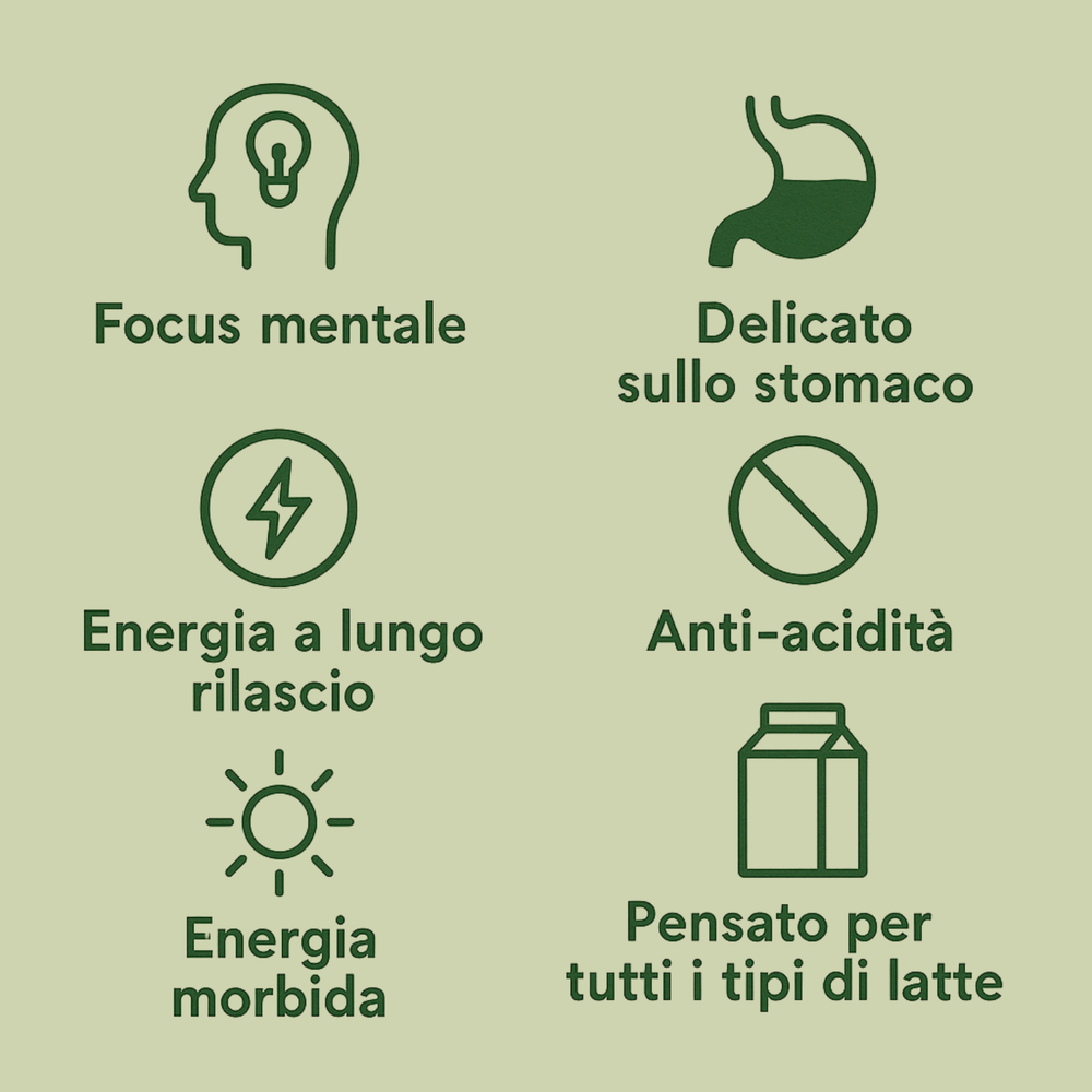 Un blend italiano dal cuore asiatico, pensato per sciogliersi alla perfezione, esaltare la cremosità del latte e regalarti un’energia costante, morbida e gentile. Il tuo nuovo cappuccino verde di ogni mattina.