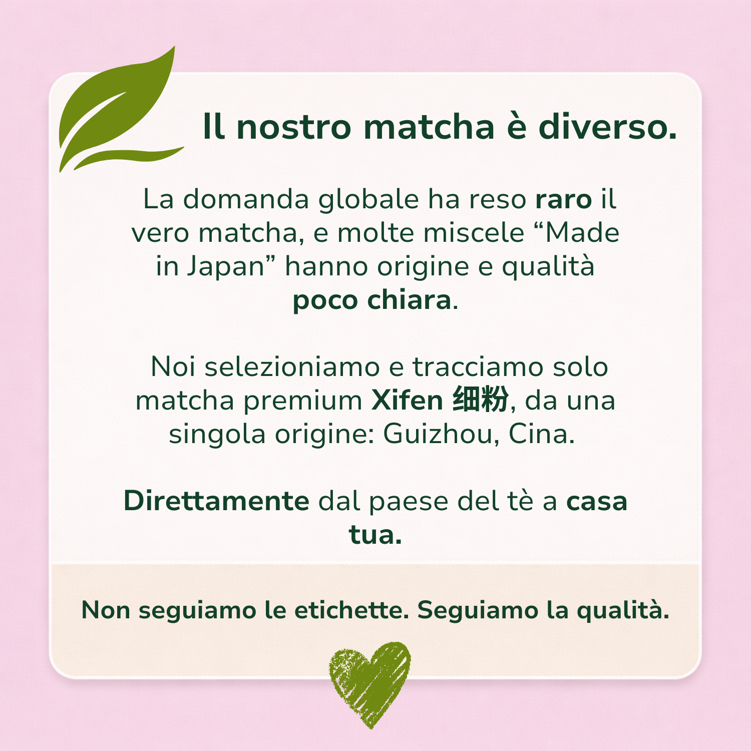 Foglie selezionate, coltivate in natura incontaminata e lavorate con cura.